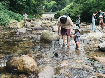豊かな森と、川のせせらぎが美しいキャンプ場「モリノネカワノネ」で、みんなでつくる、ひみつのあそびば!