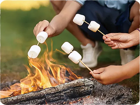 焚き火でマシュマロを焼いて、おやつづくり。来場特典でマシュマロプレゼント!