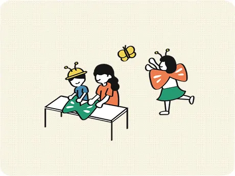 友安製作所 / ラコームタンボールをつかって、森の生き物の羽をつくろう。思い思いにデコレーションして、自分だけのコスチュームに。