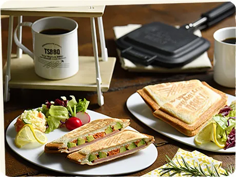 道具の提供:村の鍛冶屋村の鍛冶屋のホットサンドメーカーをつかって、焚き火でホットサンドをつくろう!材料は会場内でお求めいただけます。