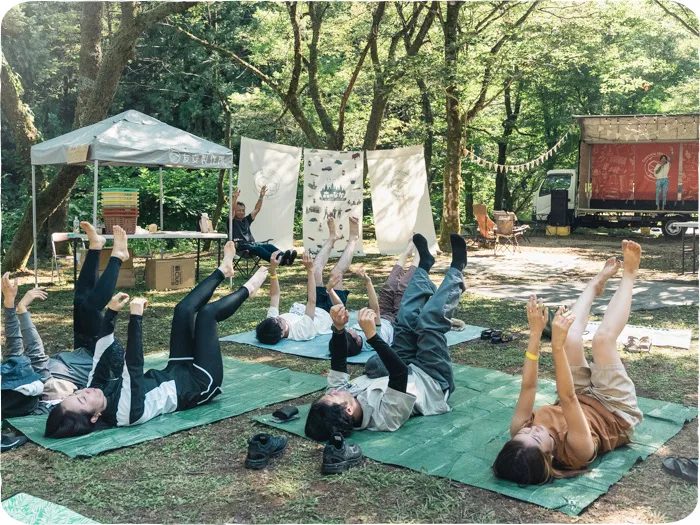 キャンプ初心者さんでも挑戦できる「アウトドア体験」や、手を動かして自由に楽しむ「ものづくり」。 大自然に身体をあずけてリラックスする「テントサウナ」や「青空ヨガ」。